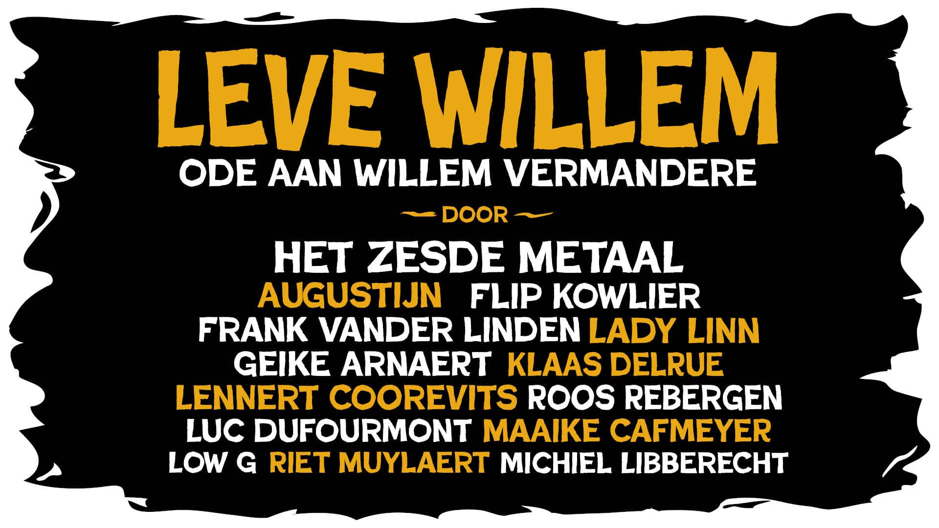 Top musicians and singers add a fresh, personal twist to Vermandere’s classics, accompanied by Het Zesde Metaal.